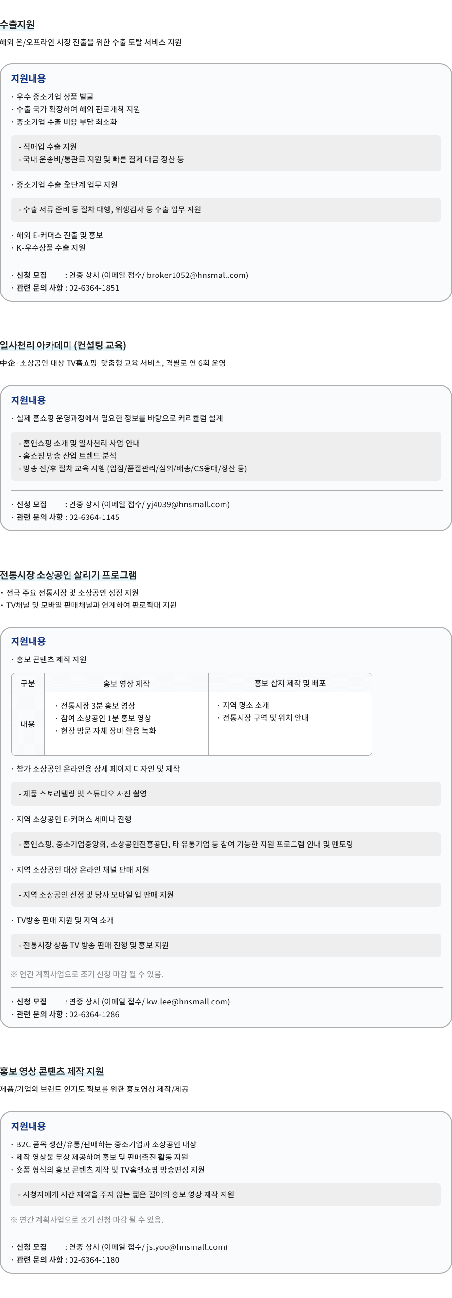 | 중소기업중앙회 강원지역본부 | 26.02.03 ~ 26.02.26 | 033-241-0010 | 신청 바로가기 |
